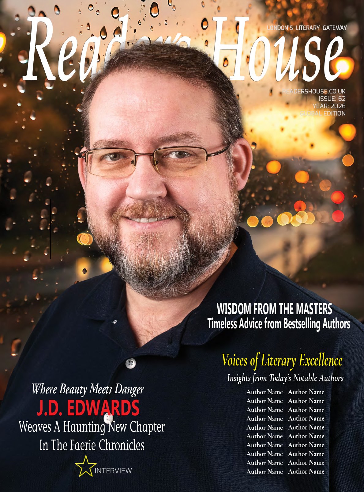At Reader’s House, our cover is never chosen lightly. Each issue celebrates a writer whose work does more than entertain—it expands the boundaries of storytelling, invites readers into deeper reflection, and leaves a lasting mark on contemporary literature. For Issue 62, we are proud to feature J. D. Edwards, an author whose imagination, scholarship, and emotional insight have combined to produce one of the most compelling fantasy series of recent years.
