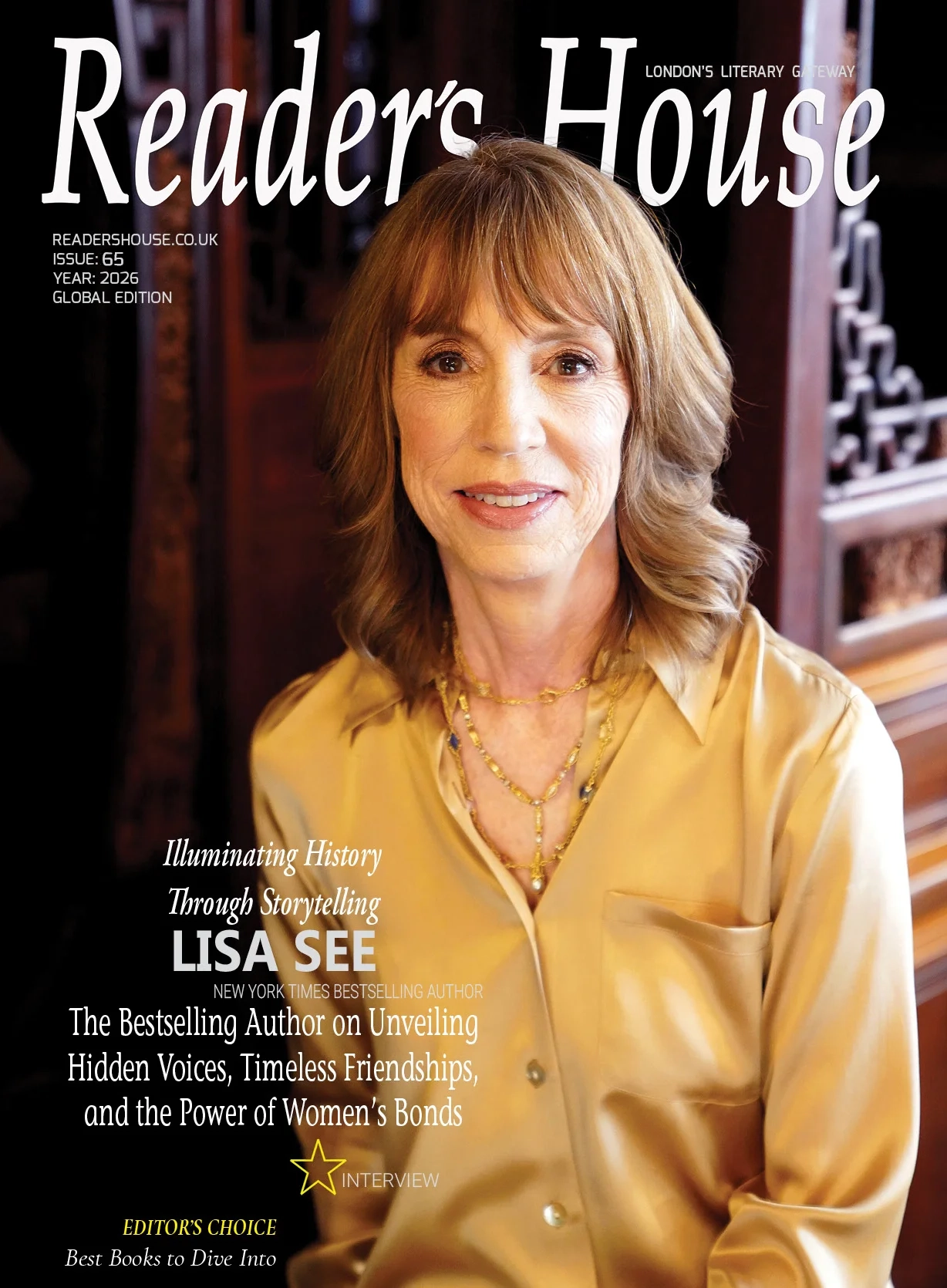I t is with immense pride and excitement that Reader’s House features the renowned New York Times Bestselling author Lisa See on the cover of this issue. Lisa See is more than a storyteller; she is a historian, a cultural bridge-builder, and a champion of voices often forgotten by time. Her body of work — including beloved novels such as Snow Flower and the Secret Fan, The Tea Girl of Hummingbird Lane, and The Island of Sea Women — captures not just moments in history, but the human experiences that transcend eras, cultures, and geographies. Her voice resounds deeply, illuminating the struggles, resilience, and interconnected lives of women across centuries.